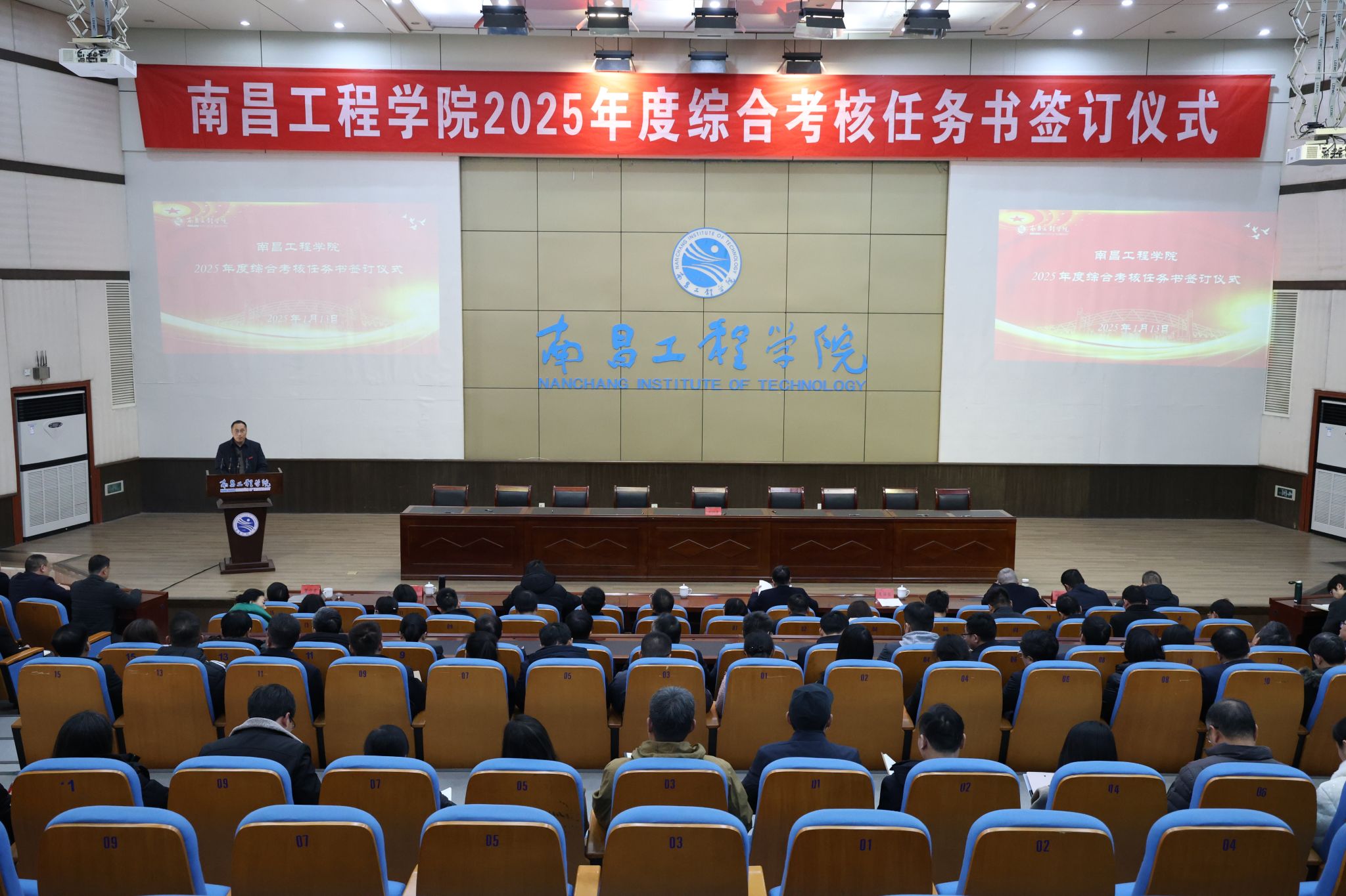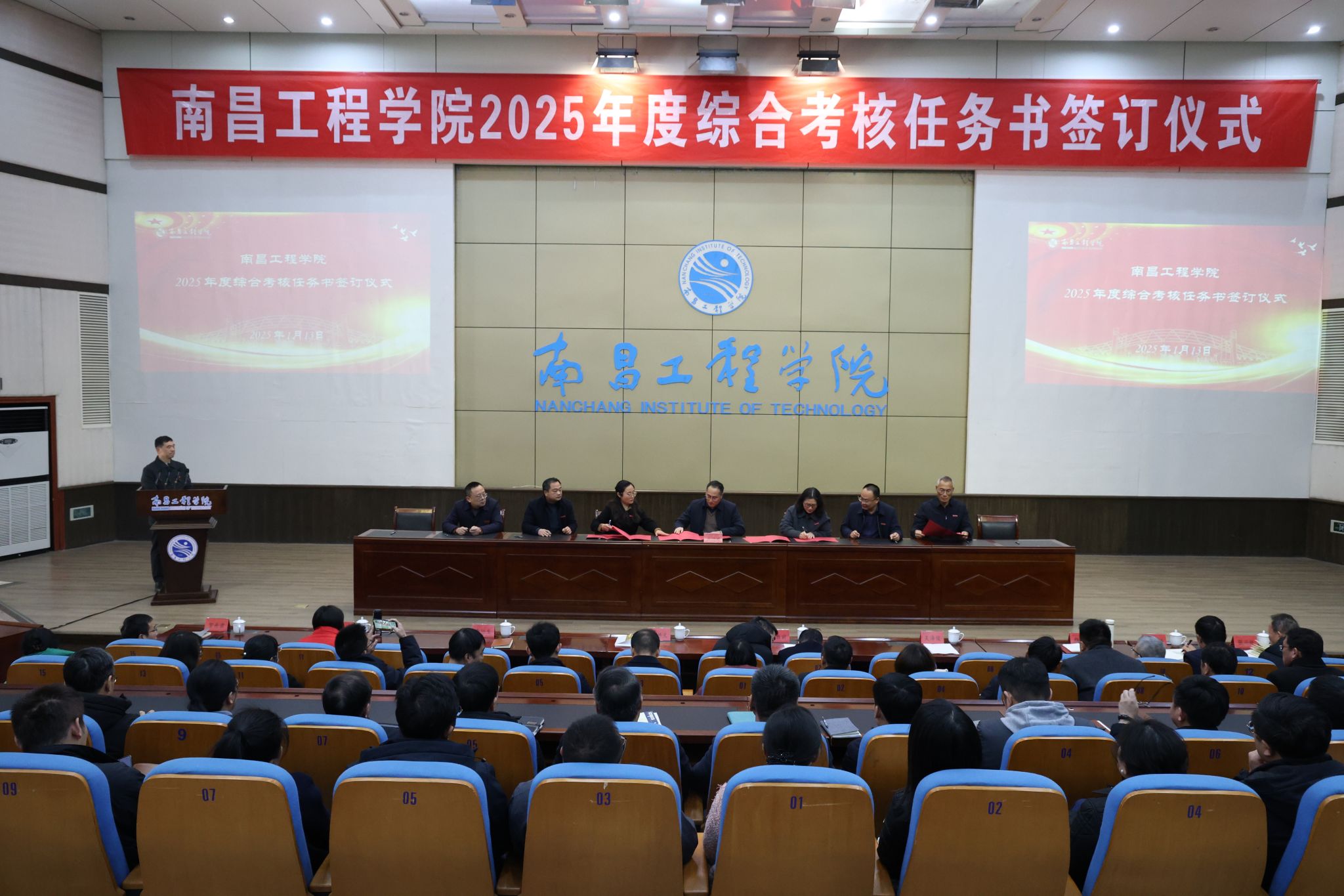 1月13日下午,学校在大禹学术报告厅举行二级单位(部门)2025年度综合考核任务书签订仪式。校党委书记汪胜前出席并讲话,校长刘祖文与各二级单位(部门)签订2025年度综合考核任务书并讲话,校党委副书记吴泽俊主持,在家校领导和副处级以上干部参加。