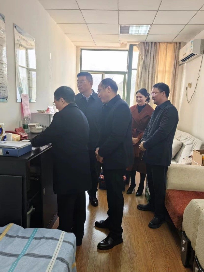 校领导先后走访了行政总值班室、西大门、水电中心、西次门、教师公寓、医院、学生公寓等场所,与值班人员亲切交谈,送上诚挚问候,详细询问工作生活情况,对他们坚守岗位、倾力保障春节期间学校正常运转和安全稳定表示敬意与感谢。
