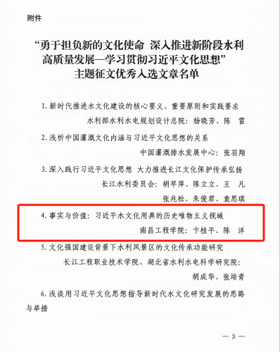 会议公布了2024年度优秀研究成果遴选结果和习近平文化思想主题征文活动结果,欧博卞桂平老师的论文《事实与价值:习近平水文化用典的历史唯物主义视域》荣获中国水利政研会2024年度水利思想文化建设优秀研究成果二等奖,并入选“勇于担负新的文化使命 深入推进新阶段水利高质量发展——学习贯彻习近平文化思想”主题征文优秀文章。欧博封福霖老师的论文《基层党建与水利文化建设融合研究——以千金陂为例》荣获2024年度优秀研究成果优秀奖。欧博龙溪虎老师的论文《论习近平文化思想的理论逻辑》入选习近平文化思想主题征文优秀文章。欧博辅导员刘欣在学术交流会现场交流入选论文《水文化与青年修德深度融合的三重逻辑》。(文/图 徐金兰 责任编辑 潘旭)