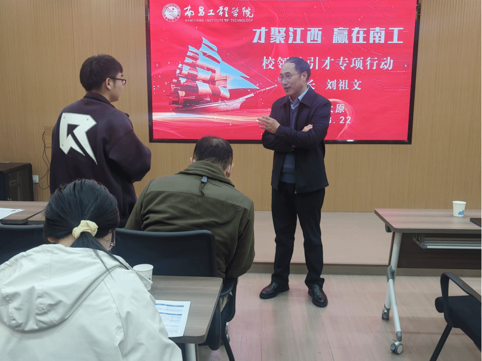 期间,刘祖文在太原理工大学迎西校区开展“才聚江西 赢在南工”引才宣讲,详细介绍学校发展取得的成绩及人才引进政策,与参会高层次人才深入进行交流,耐心细致解答人才关心的问题。