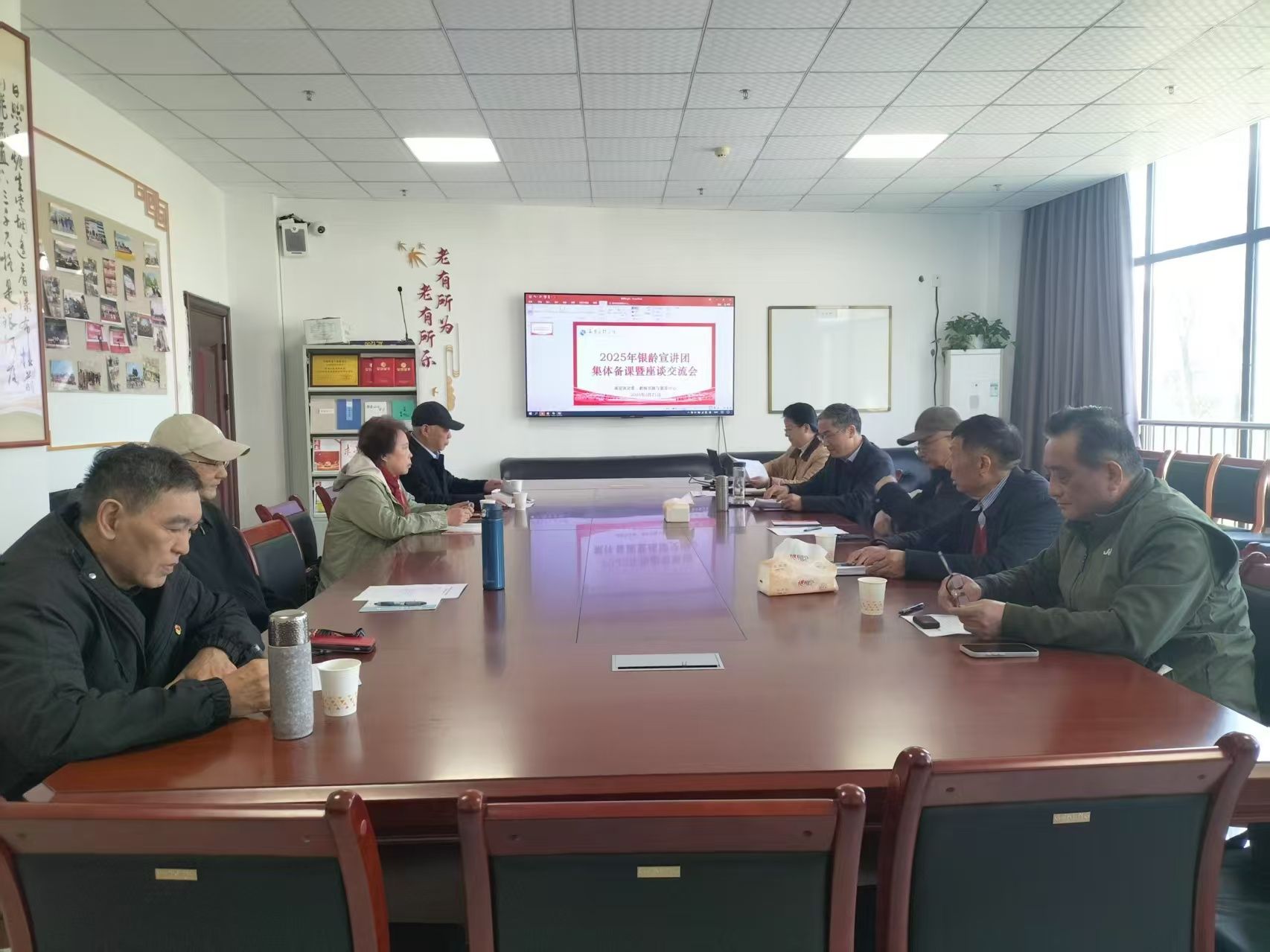 近日,学校银龄宣讲团集体备课暨座谈交流会在瑶湖校区综合服务楼B103举行,校关工委相关负责同志和银龄宣讲团成员参加。