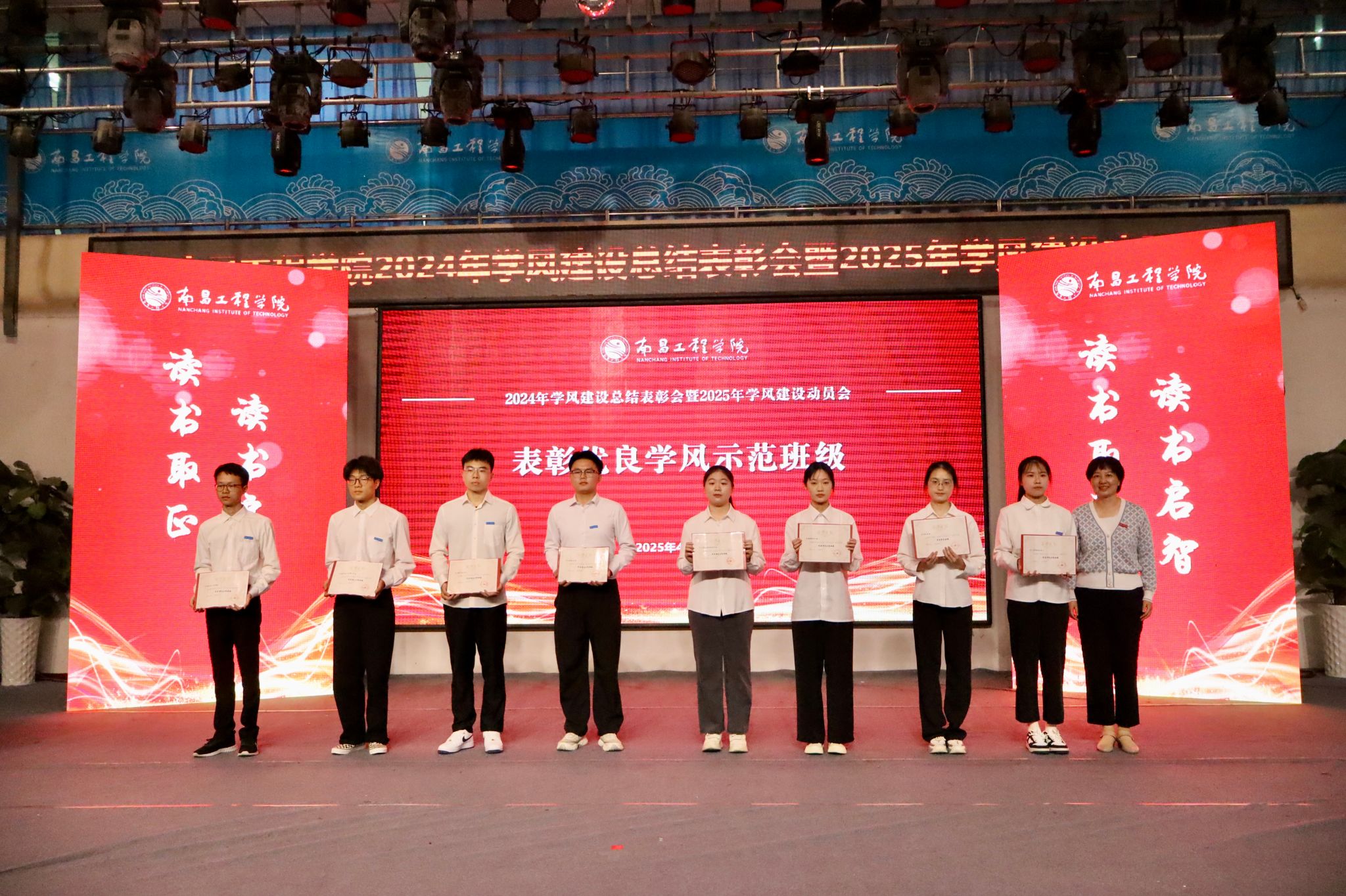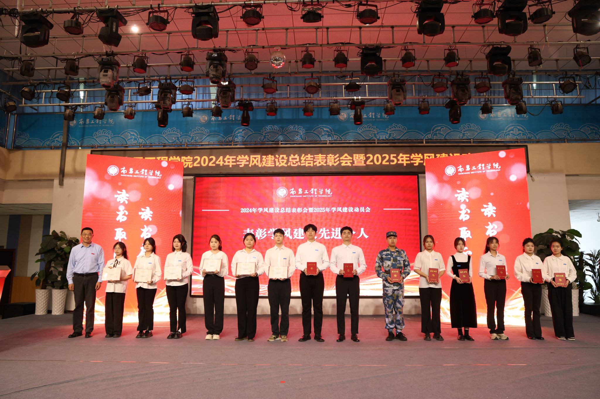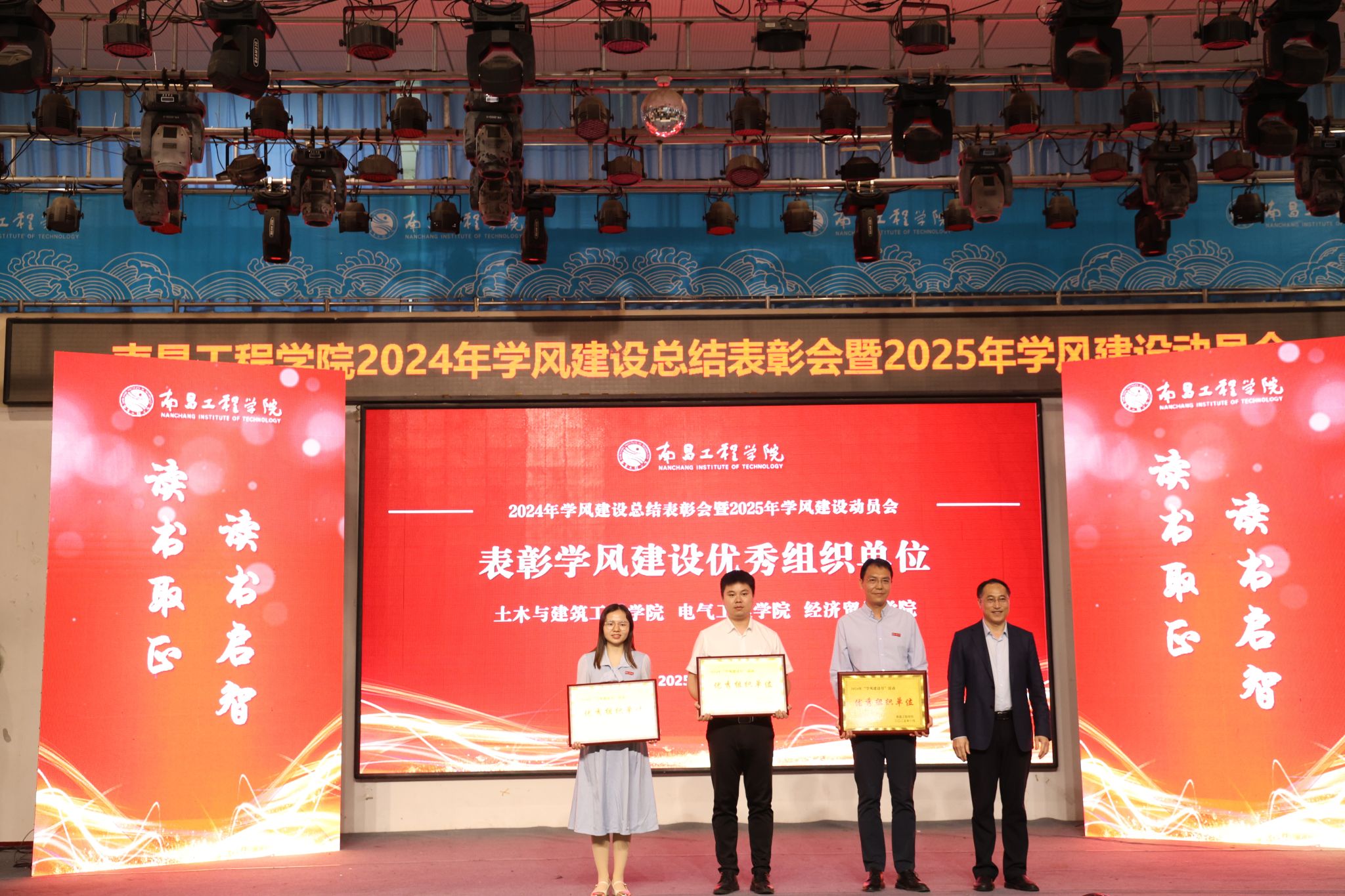 活动宣读了表彰文件并为2024年学风建设优秀组织单位、优良学风示范班级及学风建设先进个人进行了颁奖,强调各学院要向优秀学习、向标准看齐,紧密围绕最新工作要求,明确目标、细化任务,以高度的责任感与使命感,脚踏实地、真抓实干,全力推动学风建设工作迈向新台阶。