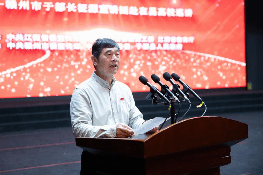 4月18日上午,赣州市于都长征源宣讲团在欧博瑶湖艺术中心开展“永远的长征”主题巡讲活动,深入贯彻落实习近平总书记关于传承红色基因的重要指示精神,讲好长征故事,传承红色基因。校党委副书记吴泽俊出席并致辞,相关职能部门负责同志、各学院党员、辅导员、思政课教师代表,校院两级大学生骨干培训班、团学干部学习习近平新时代中国特色社会主义思想宣讲团成员等1100余人现场聆听宣讲,现场气氛热烈,反响强烈。