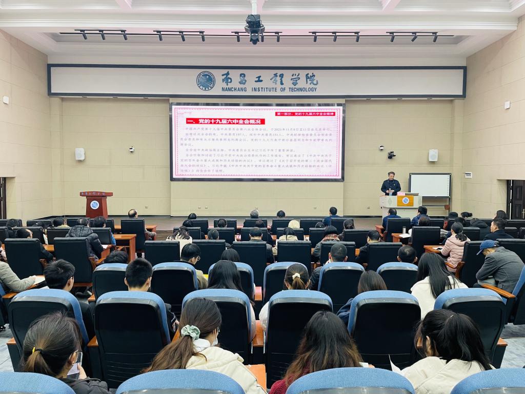 宣讲以《学习贯彻党的十九届六中全会和江西省第十五次党代会精神——培养担当民族复兴大任的时代新人》为题,从时代背景、具体内容和核心要义三个方面,围绕“一个根本问题”“两个确立”“三次飞跃”“四个伟大成就”“五大历史意义”“十个坚持”等内容,深入解读了党的十九届六中全会精神。