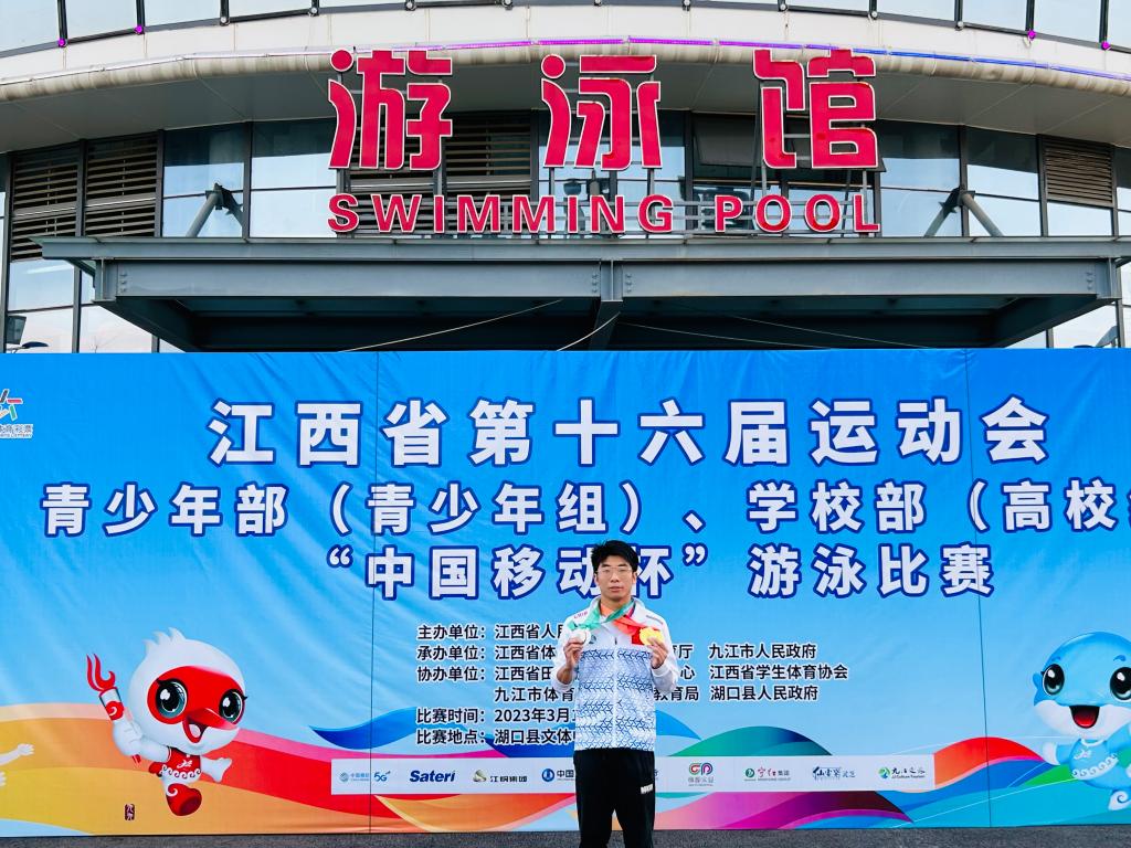 3月14日至15日,江西省第十六届运动会学校部(高校组)游泳比赛在九江湖口游泳馆举行,来自全省29支代表队254名游泳运动员参赛。欧博游泳队经过奋勇拼搏,勇夺2金4银7铜的好成绩,名列团体总分第三名。