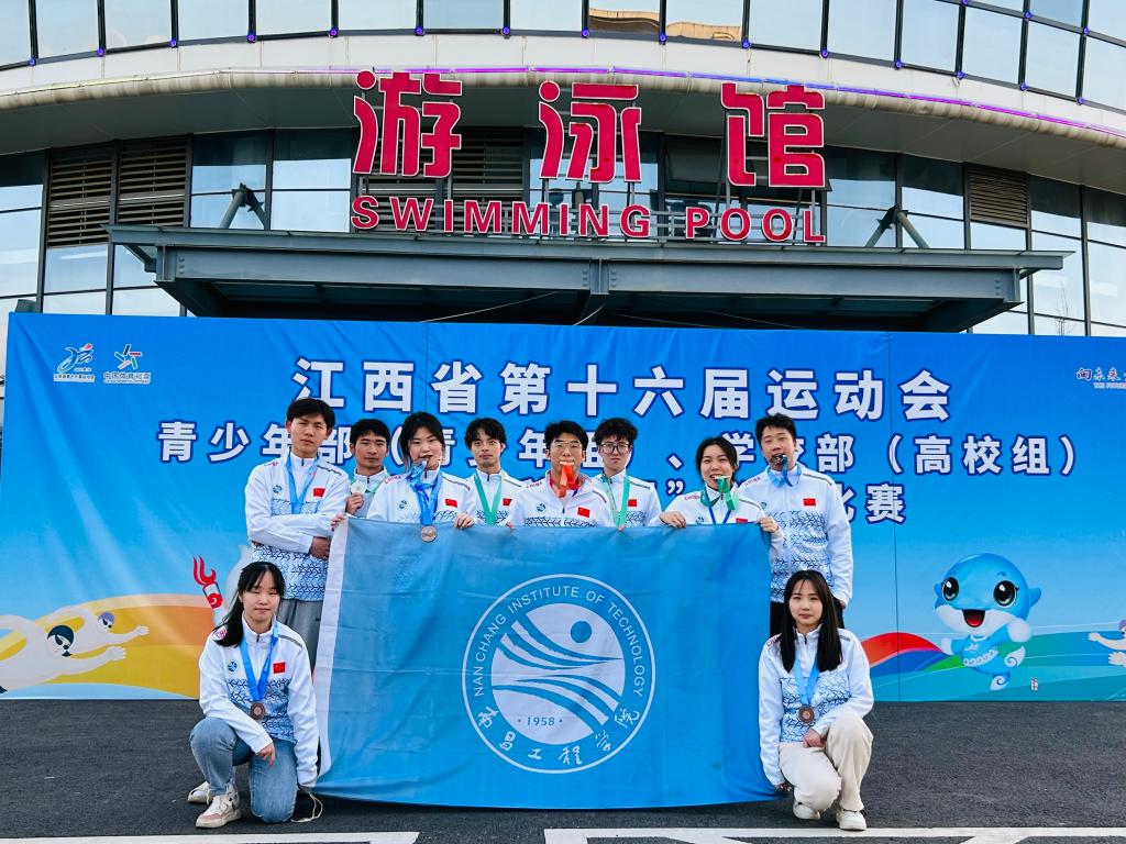 校游泳队始终秉承“以水润体、以水育人”的理念和“泳”往直前、坚持不懈的精神,依托校大学生游泳协会,常年坚持训练,运动竞技水平不断提升,在本届省运会取得了运动成绩和精神文明双丰收。全队获得前八名奖项32项,被组委会评为“体育道德风尚奖代表队”,主教练陈智获得“优秀教练员”称号,宋超、幸萱萱两位同学获得“体育道德风尚奖运动员”称号。