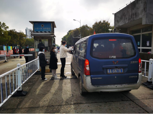在疫情防控最吃紧的困难时刻,保卫处处长李超琍说,“我们必须确保后勤补给线的安全畅通,食堂、超市物资配送车辆要快速开通绿色通道,但仍要严格查验,既保证食物供应,又要坚决阻断疫情进入校园的传染源和传播链。”每天,车辆进出最繁忙的早晨7-8点钟,杨中卉、徐晓龙等科级干部主动到位,指导校卫队员及时掌握最新调整的防控政策。因封控临时调整的送货车辆,校卫队巡逻班要跟着配送车辆到食堂卸完货后马上引导车辆驶离校园,绝对禁止送货车辆到学生公寓等人员密集场所,确保定点配送、无接触配送。