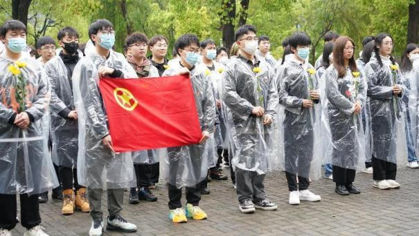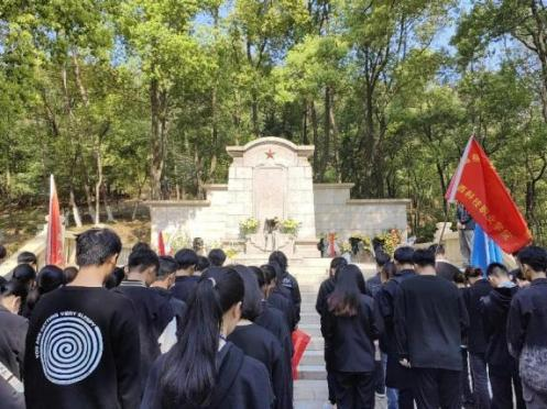 在方志敏烈士陵园,外国语学院团委、士官学院团委、水利与生态工程学院青年志愿者协会组织团员团干、青年志愿者代表来到烈士纪念碑前,献上菊花并默哀。外国语学院的团员代表们共同诵读了《可爱的中国》,表达了对方志敏同志的深切怀念。