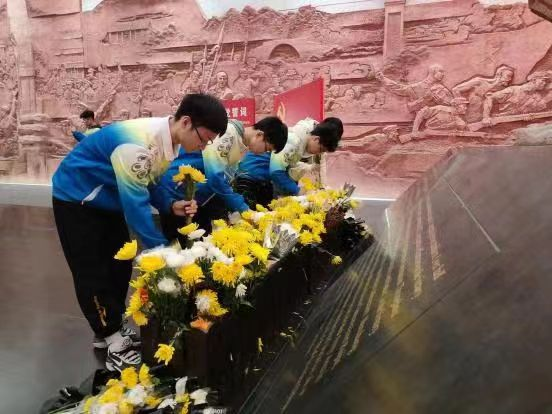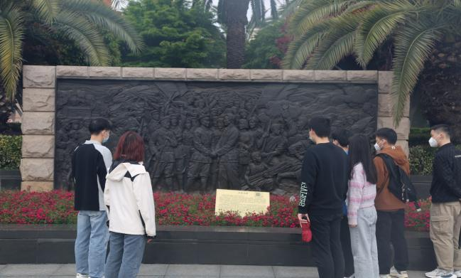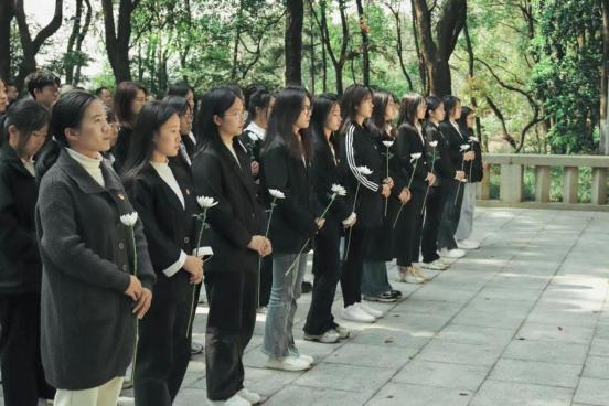在南昌新四军军部旧址陈列馆,土木与建筑工程学院团委、人文与艺术学院团委组织团员青年进行默哀仪式,并依次向先烈雕塑献上鲜花,缓步绕纪念碑瞻仰。人文与艺术学院的团员青年们还利用专业所学,录制了音乐MV《英雄赞歌》歌颂革命先辈们舍生忘死、勇敢无畏的革命精神。