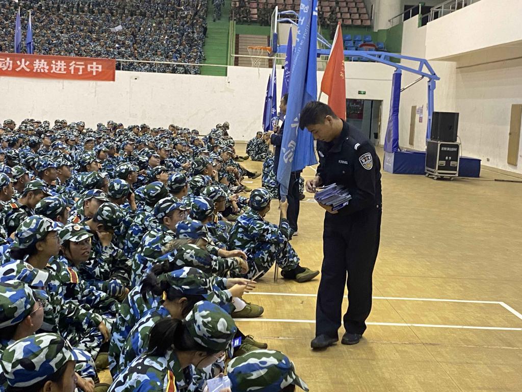 10月11日晚,校保卫处联合辖区光伏派出所在体育馆为2021级全体新生开展“青春无悔 无诈校园”反诈骗宣传教育活动,派出所所长王雪松、副所长陈斯及相关警官参加,活动由保卫处副处长李超琍主持,体育教学部和大学生教官队给予了保障支持。