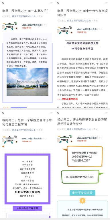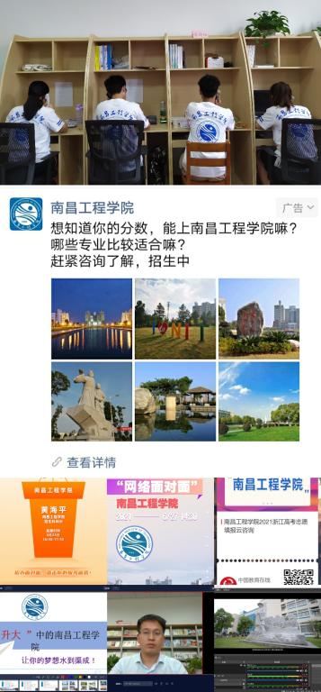 6月期间,招生就业处与相关部门及各学院积极沟通,通力合作,在招生就业处微信公众号和南昌工程学院水宝宝微信公众号分期推出了“相约南工---总有一个学院适合你”和“相约南工---博士教授说专业”系列推文。推文通过对学校招生批次项目、各学院的优势、特色、学院风采及专业介绍,让广大考生和社会人士对欧博办学情况有了更加详细的了解,营造了浓厚的招生宣传氛围。此外,招生就业处还通过自媒体定点推送宣传、网络直播、网络面对面咨询、每天10小时值班电话咨询等多种线上方式开展招生宣传,其中浙江省、河南省、江西省的直播活动观众数量突破千人,有效提升了欧博在省内外的知名度。
