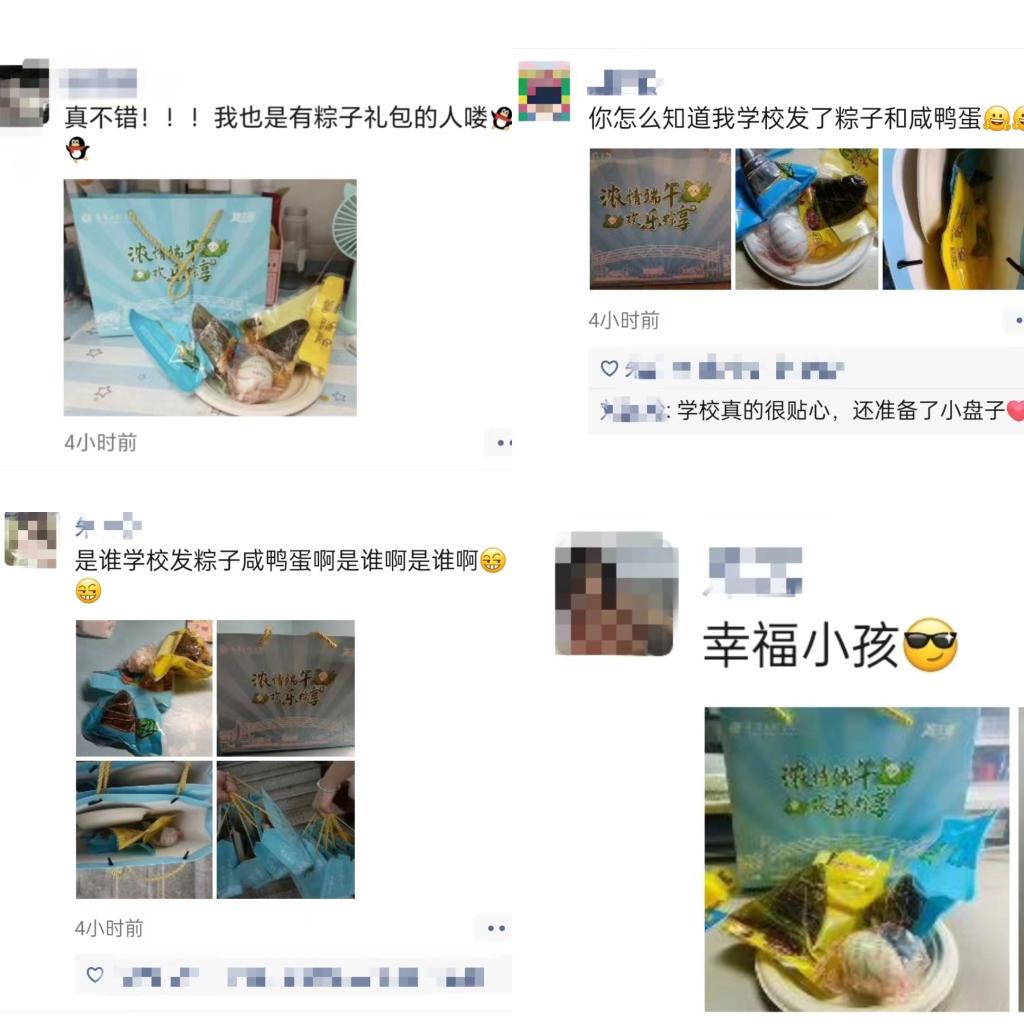 学生代表收到学校老师送来的端午节礼物高兴地表示:“谢谢老师!”“祝老师端午安康!阖家欢乐!”。同学们还纷纷发朋友圈晒幸福!