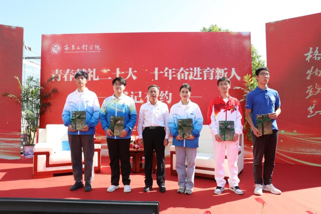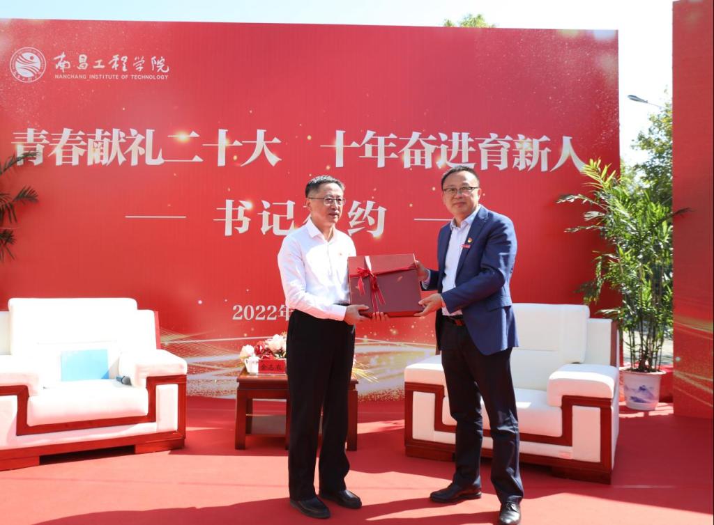 活动现场,金志农向学生代表赠送《江西樟树》丛书,学生工作部(处)负责人为金志农送上纪念相册及纪录片《时间的答案》。