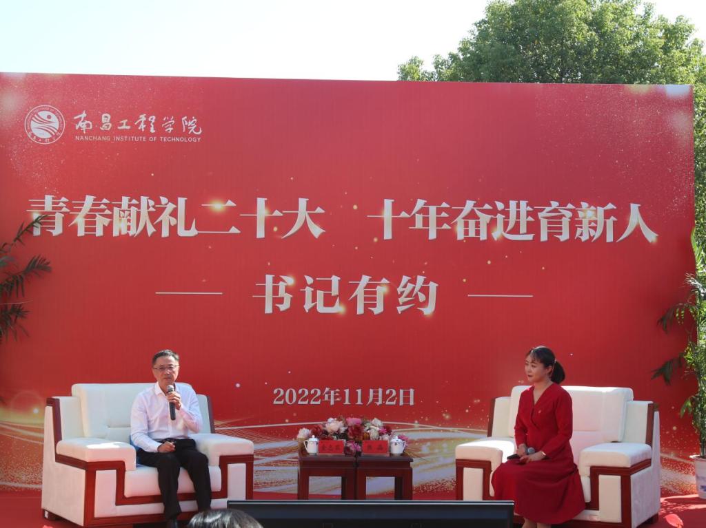 11月2日上午,校党委书记金志农在生物科技楼开展“书记有约”暨“双体验日”活动,与大学生们面对面交流,零距离互动,以一堂“沉浸式”微党课宣讲党的二十大精神,与全体师生共话南工近十年的奋进故事。副校长周敏丹,党委办公室、党委学生工作部、团委及相关学院党委书记、副书记,师生代表共80余人参加活动。