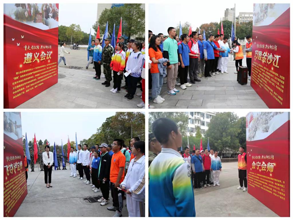 出征仪式上,汪胜前宣布活动开始并发令。同学们精神抖擞,迈着矫健的步伐从“湘江战役”出发,途经“遵义会议”“巧渡金沙江”“强渡大渡河”“飞夺泸定桥”等站点,在“会宁会师”完成了健步活动。在各个打卡学习点,师生们认真学习党史知识,聆听长征故事、观看宣传展板、学唱红色歌曲,在“边走边学”中感悟长征精神,汲取奋进力量,激发知史爱党、知史报国、知史荣校的热情。