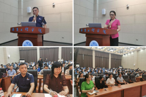 6月20日下午,由校工会、教务处、信息工程学院主办的“传承红色基因,书写劳模时代荣光”劳模精神进校园宣讲会在教学北楼C105举办,全国劳动模范、中国电信九江分公司高级副总监兼向东党支部书记向东同志主讲,校党委书记汪胜前会见了向东,江西省劳模协会会长、江西省总工会原一级巡视员林玉华参加活动,欧博师生代表近200人参与。