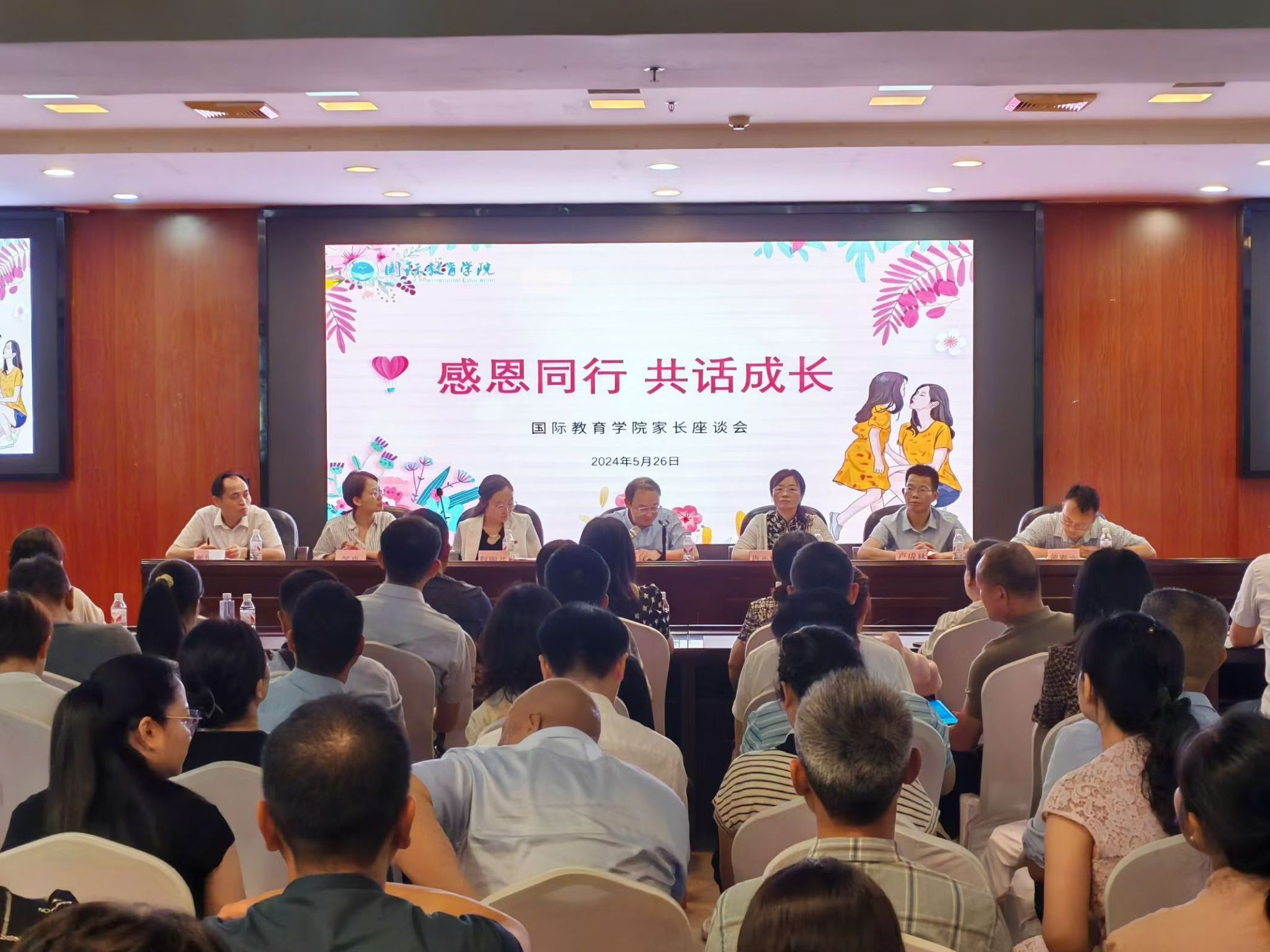 5月26日,国际教育学院在悦岸酒店四楼会议室举行家长座谈会,进一步增进家校育人共识,加强联系。团委、教务处、学工处、招就处等部门相关负责人、学院党政班子成员、班主任、辅导员以及200余位学生家长参加。