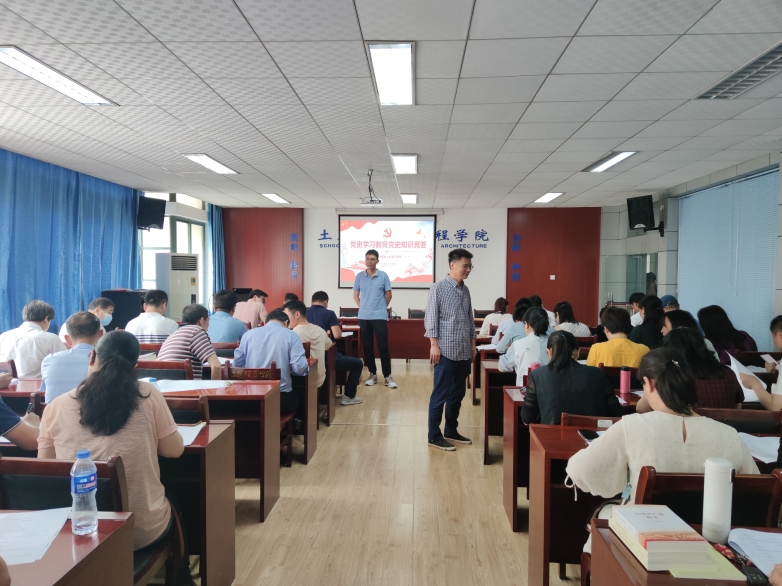 5月31日,土木与建筑工程学院开展全体教职工党史学习教育推进会暨党史知识竞答赛,学院党委书记许明主持会议并主考。