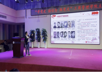4月21日,工商管理学院在大学生活动中心多功能厅开展“学党史、强信念、跟党走”主题微党课,引导师生党员和青年学生在“潜心笃志、勤学笃思、守正笃行”中学好党史、砥砺前行,学院师生200余人参加活动。
